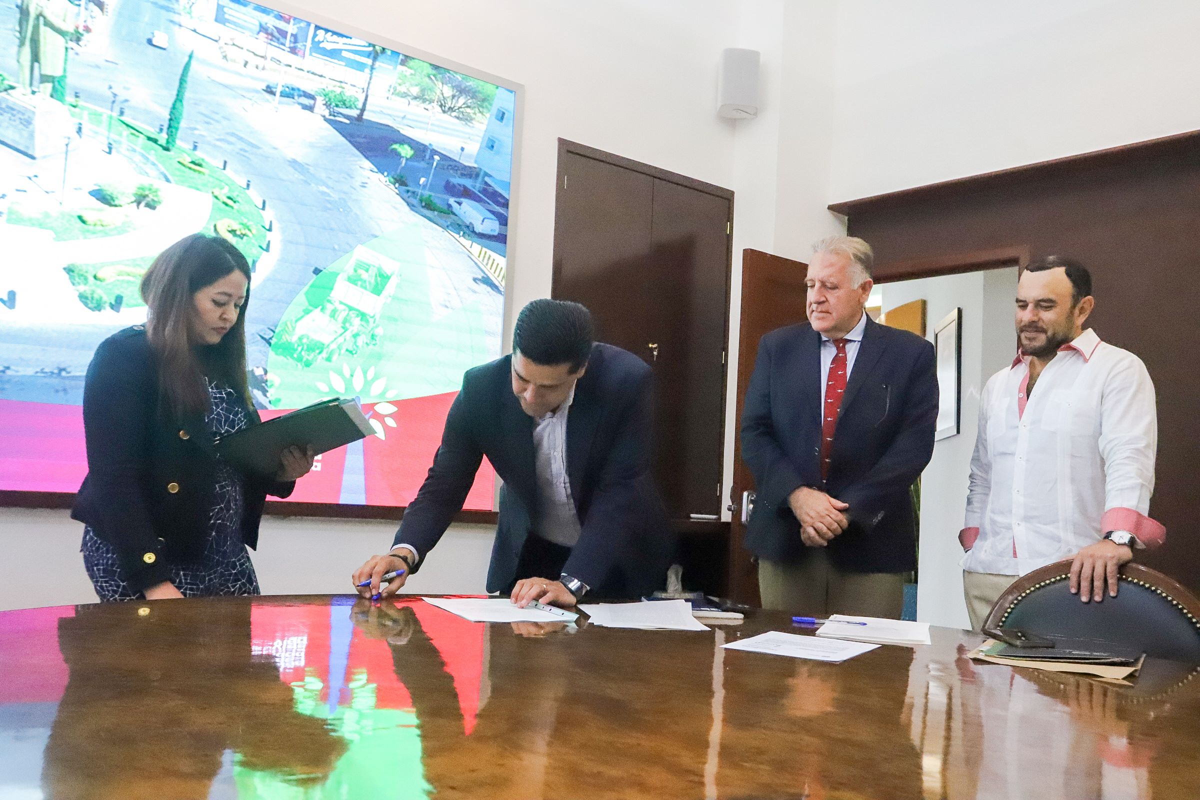 El presidente municipal, Leo Montañez, encabezó la tercera firma de escrituras, a través de las cuales se consolida mejor equipamiento urbano, como áreas verdes o vialidades y espacios educativos, a favor de la ciudadanía de diferentes zonas de la ciudad.