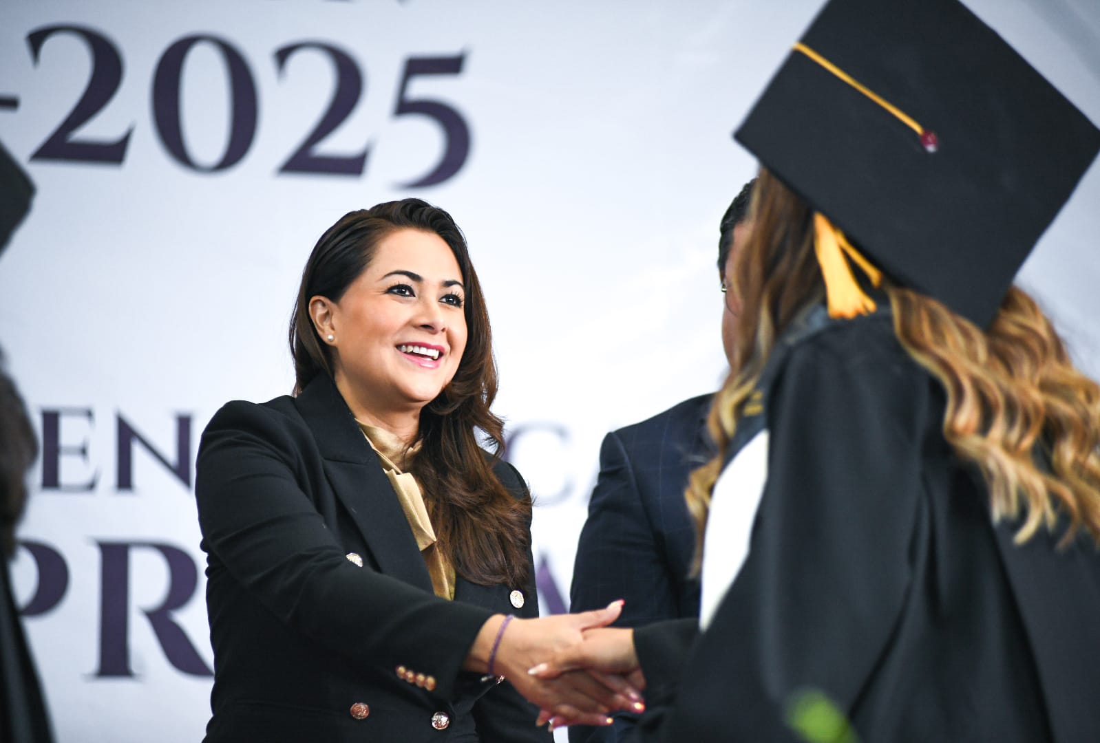 La gobernadora felicitó a las y los egresados, y les pidió asumir su profesión con un gran compromiso y responsabilidad, ya que tienen en sus manos la importante encomienda de formar y guiar a las nuevas generaciones.