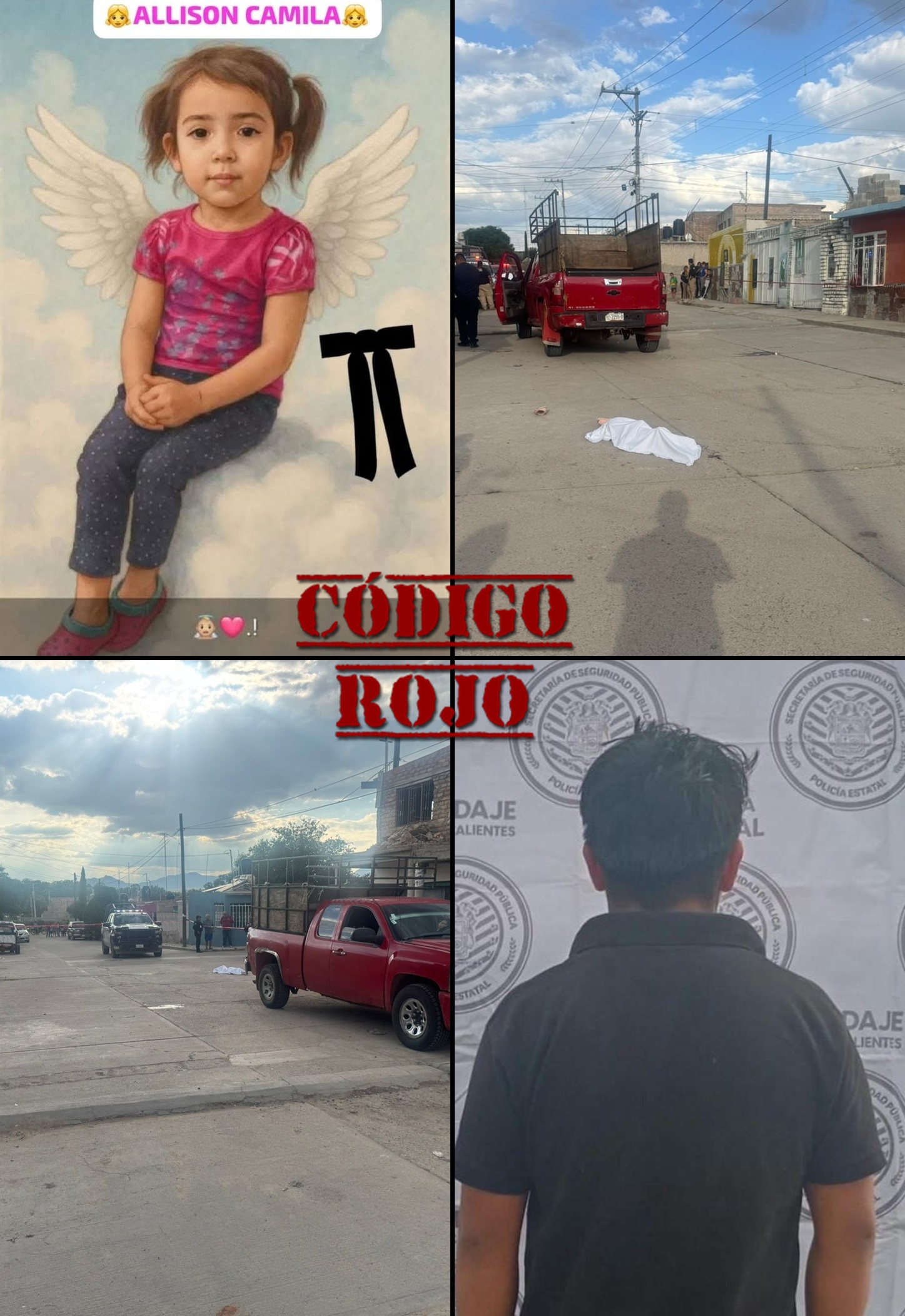 La tragedia se registroen el municipio de Asientos cuando una niña de 6 años, identificada como Alisson de 6 años murió al ser impactada por una camioneta conducida por un adolescente de 14 años.