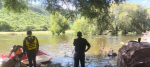 Desde la tarde de ayer domingo personal del H. Cuerpo de Bomberos del Estado atendieron el reporte que se recibió en el Servicio de Emergencia 911 en el que se manifestaba que había caído una persona al cuerpo de agua, luego de que al encontrarse arriba de un caballo este reparó y lo tiro al agua, perdiéndose entre la corriente, por lo que minutos después de las 17:00 horas inicio la búsqueda del cuerpo de buzos especialistas de los Bomberos del Estado sin lograr ubicarlo el día de ayer.