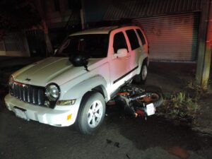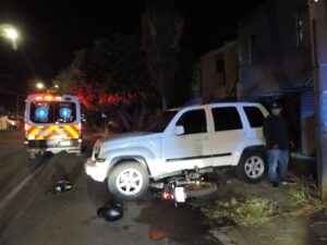 Al llegar frente a la unidad habitacional de la SEDENA, el conductor de la motocicleta observa el vehículo estacionado por lo que aplica los frenos de manera intempestiva lo que provoca que la motocicleta derrape y ambos ocupantes salgan eyectados impactándose ambos contra el cofre de la Jeep Liberty en color blanco, mientras que la motocicleta termino debajo de la camioneta.
