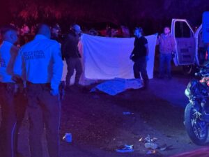 El fuerte golpe provocó que los tres ocupantes de la motocicleta cayeran sobre la cinta asfáltica, momento en el que el pesado camión pasó por encima de ellos, causándoles la muerte instantánea.