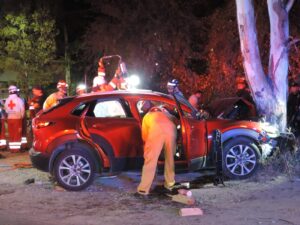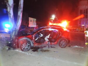 El conductor del Sentra intentó frenar al notar que el Mazda se atravesaba en su trayectoria, pero no logró evitar el impacto. El Nissan colisionó con la parte lateral izquierda del Mazda, proyectándolo varios metros hacia adelante hasta terminar estrellado contra un árbol, mientras que el Sentra quedó sobre Avenida Providencia.