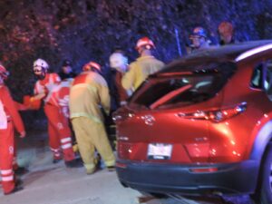 En el Mazda, sin embargo, la conductora quedó prensada dentro del vehículo, por lo que los rescatistas utilizaron equipo hidráulico para liberarla.