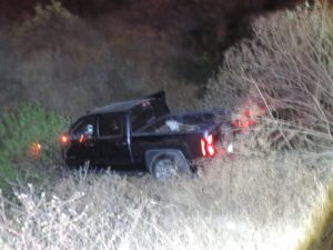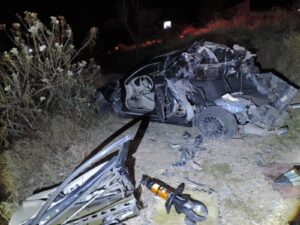 Tras el golpe, la camioneta también perdió el control y terminó saliéndose del camino, cayendo a un barranco de varios metros de profundidad. El conductor de la GMC logró descender del vehículo y huyó del lugar antes de la llegada de las autoridades.