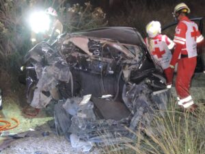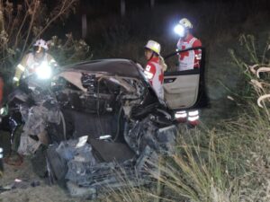 Automovilistas que presenciaron el accidente alertaron a los servicios de emergencia, acudiendo paramédicos de la Cruz Roja, quienes emplearon equipo hidráulico para rescatar al conductor del Nissan, que había quedado prensado entre los fierros.
