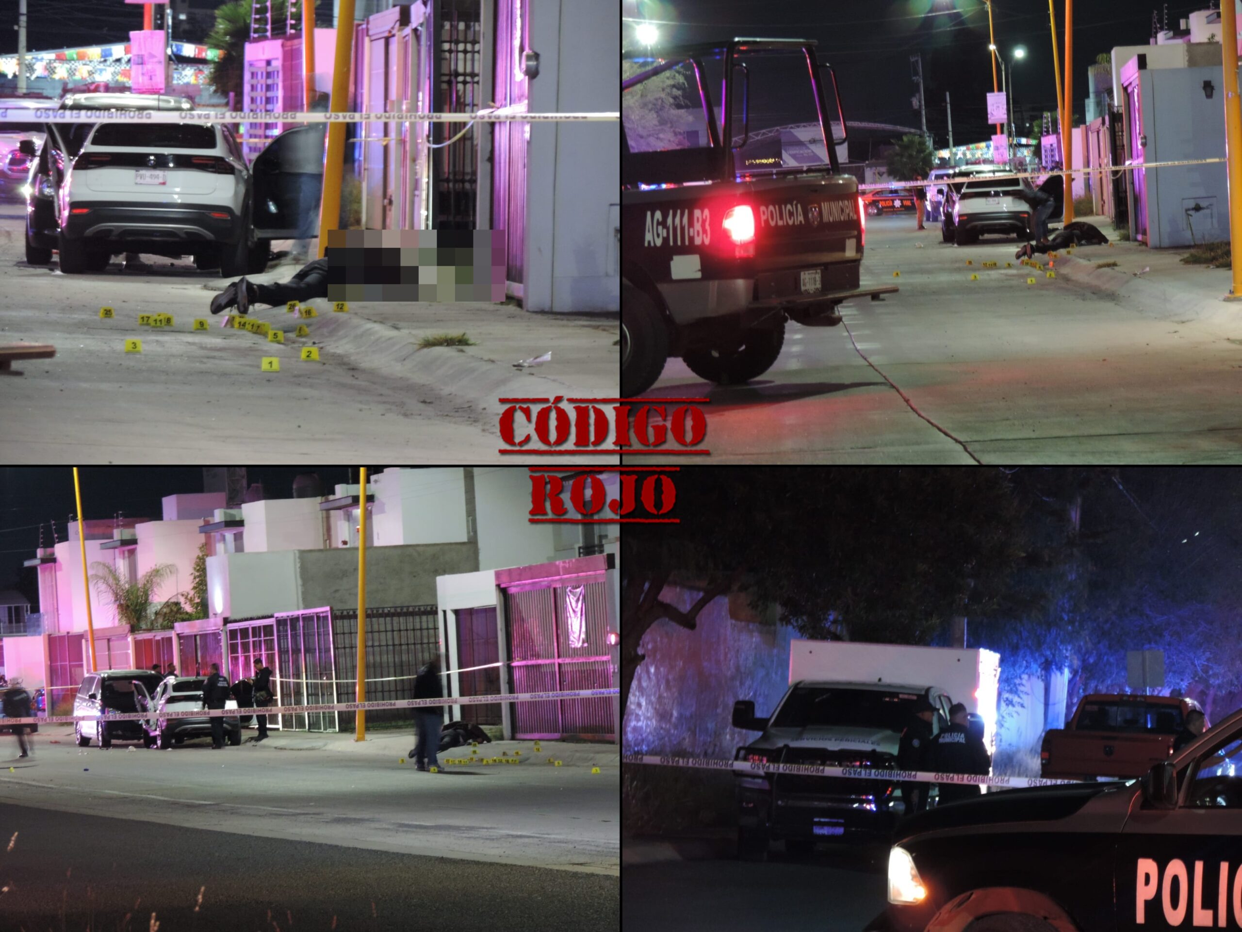 Vecinos de la zona dieron parte de lo sucedido a los servicios de emergencia, arribando al lugar policías municipales y paramédicos quienes confirmaron la muerte de este hombre por lo que la zona fue acordonada, al llegar servicios periciales realizaron el levantamiento de más de 28 cartuchos percutidos de calibre 9mm.