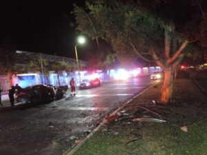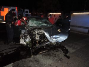 La unidad continuó su trayectoria descontrolada, chocando contra un volado de concreto y posteriormente estrellándose contra el tronco de un árbol, lo que provocó que el vehículo rebotara y terminara invadiendo los carriles contrarios, generando un alto riesgo para otros automovilistas.