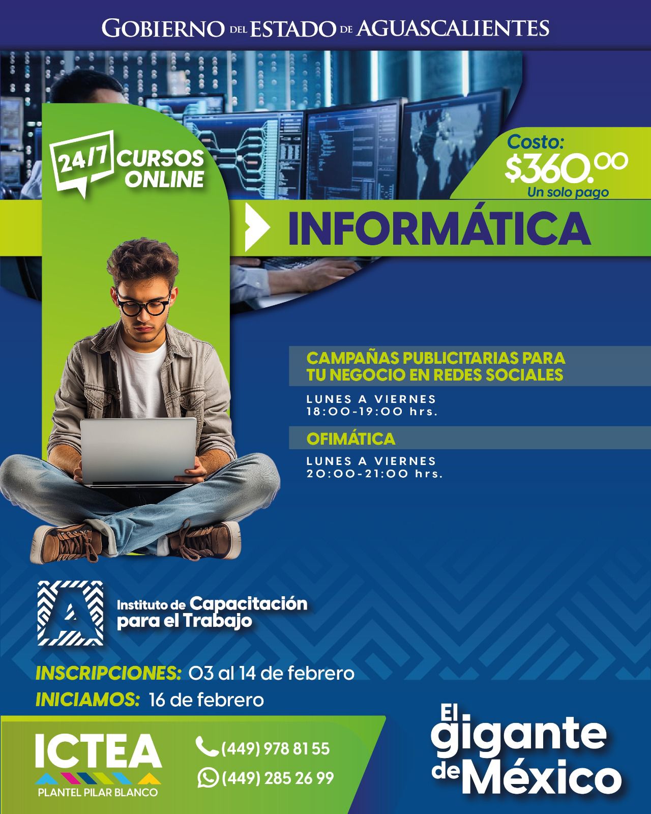 El Instituto de Capacitación para el Trabajo del Estado de Aguascalientes (ICTEA) abrió las inscripciones a sus cursos en línea, una oportunidad accesible y flexible para fortalecer habilidades laborales y mejorar el perfil profesional sin salir de casa.
