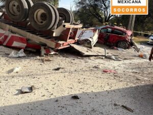 Una familia de Aguascalientes que viajaba rumbo a la Ciudad de México protagonizó un fatal accidente la tarde de este lunes en la Maxipista León–Aguascalientes, luego de que la camioneta en la que se desplazaban fuera embestida por un tráiler y cayera desde lo alto de un puente vehicular.