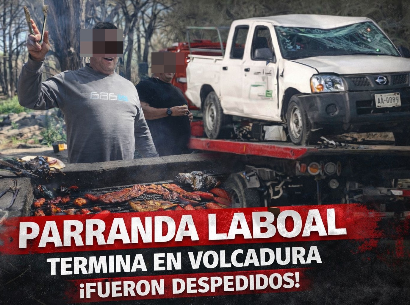 Un festejo realizado dentro del área de Inspección de Servicios Públicos Municipales terminó en accidente, luego de que empleados utilizaran una camioneta oficial para salir por más bebidas y volcaran la unidad.