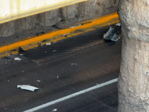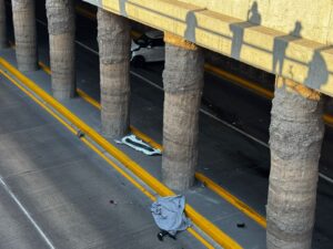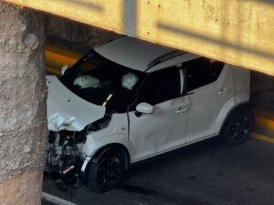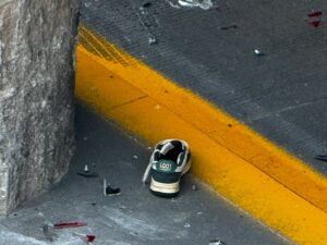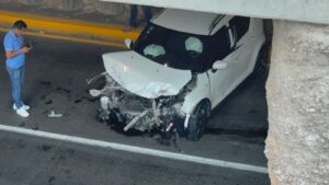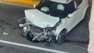 De acuerdo con los primeros reportes, el conductor de un Suzuki Ignis blanco —cuyas placas no fueron visibles— circulaba a exceso de velocidad en dirección norte a sur sobre Av. Aguascalientes. Al ingresar al paso a desnivel perdió el control del volante, lo que provocó que se proyectara hacia el camellón central.
