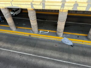 El vehículo se estrelló con el ángulo delantero izquierdo contra uno de los pilares del puente y, tras el brutal impacto, salió proyectado contra el muro lateral. La unidad rebotó nuevamente hacia el camellón, golpeando un segundo pilar.