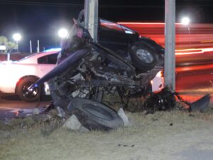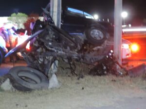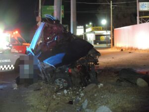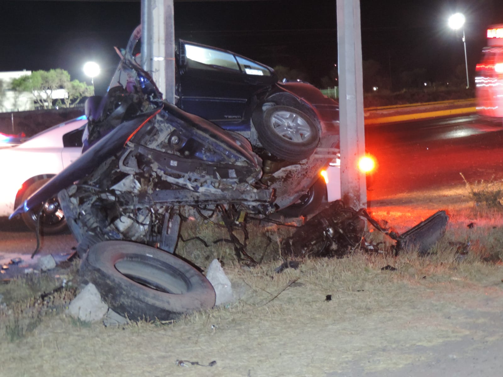 De acuerdo con los primeros reportes, un vehículo VW Jetta con placas ADW-114-G circulaba a alta velocidad cuando el conductor perdió el control, salió de la cinta asfáltica y terminó incrustándose violentamente contra dos postes de la Comisión Federal de Electricidad.