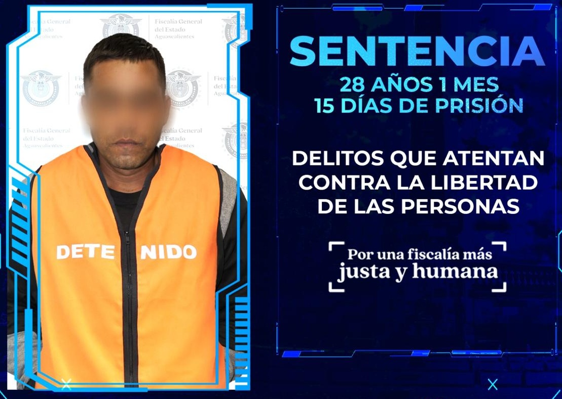 La Fiscalía de Aguascalientes informa que obtuvo sentencia condenatoria en contra de Miguel, por su responsabilidad en la comisión de delitos que atentan contra la libertad de las personas, derivados de hechos registrados en el municipio de San Francisco de los Romo, Aguascalientes.