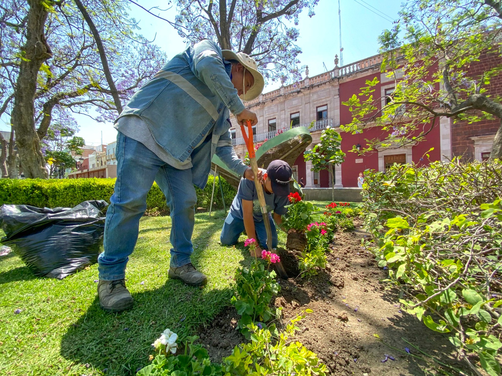 Como parte de los trabajos permanentes que realiza la Secretaría de Servicios Públicos Municipales, se realizó la plantación de 300 malvas en la Plaza de la Patria, contribuyendo a la renovación de la imagen urbana y fortaleciendo la presencia de vegetación ornamental que favorece entornos más agradables, seguros y funcionales para la ciudadanía.