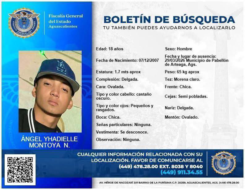 El pasado domingo 29 de marzo, autoridades recibieron el reporte de la desaparición de Ángel Yhadielle Montoya, de 18 años, quien, según los primeros informes, habría sido privado de su libertad por sujetos armados. En el mismo hecho, también fue privado de su libertad un amigo que lo acompañaba. Posteriormente, los agresores se dieron a la fuga sin que se volviera a conocer el paradero de ambos.