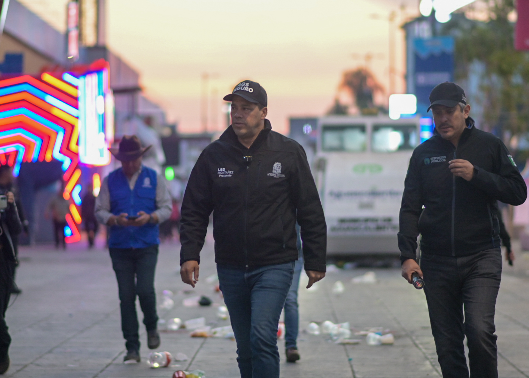 En el marco de la Feria Nacional de San Marcos 2026, el presidente municipal, Leo Montañez, encabezó el primer operativo de limpieza y lavado profundo del perímetro ferial, acciones que permite a los visitantes disfrutar de un espacio digno y aseado en las primeras horas del día.