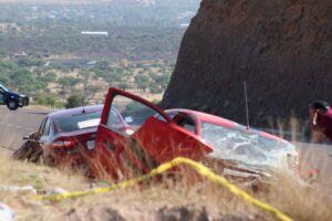 Al lugar acudieron paramédicos y elementos de la Policía Estatal, quienes al arribar localizaron dos vehículos severamente destrozados.