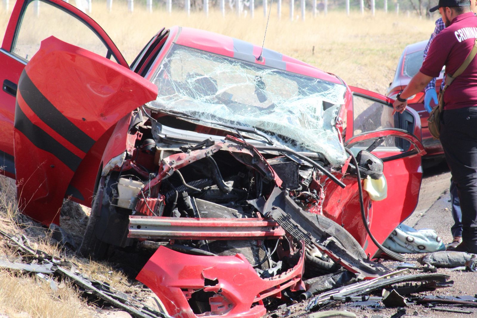 El primero era un Chevrolet Spark en color rojo, en el que viajaba una familia integrada por cuatro personas: dos adultos y dos menores de edad. Al revisar a los ocupantes, los paramédicos confirmaron que tres de ellos ya no contaban con signos vitales. El único sobreviviente fue un niño de aproximadamente 5 años, quien fue trasladado en código rojo al Hospital General de Zona No. 3 del IMSS.