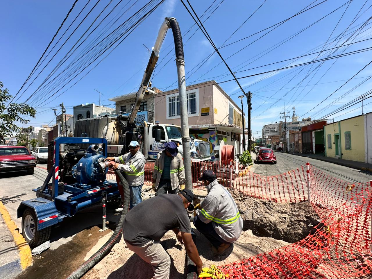 El Modelo Integral de Aguas de Aguascalientes (MIAA) da a conocer que lleva a cabo trabajos de rehabilitación integral de la línea de drenaje sanitario en la calle 5 de Febrero y Josefa Ortiz de Domínguez, en El Encino.